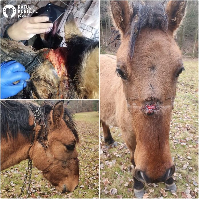 Uratowany źrebak ma wrośnięty kantar w głowę, a pod szyją zwisa mu łańcuch. Jest niedożywiony, odwodniony, z ran sączy się ropa i krew. To obraz, jaki zastali w dniu wczorajszym przedstawiciele Fundacji Viva koło Lwówka Śląskiego. O fatalnej sytuacji, w jakiej znajdują się zwierzęta poinformowali ich mieszkańcy – czytamy na łamach dziennika Lwówecki.info.