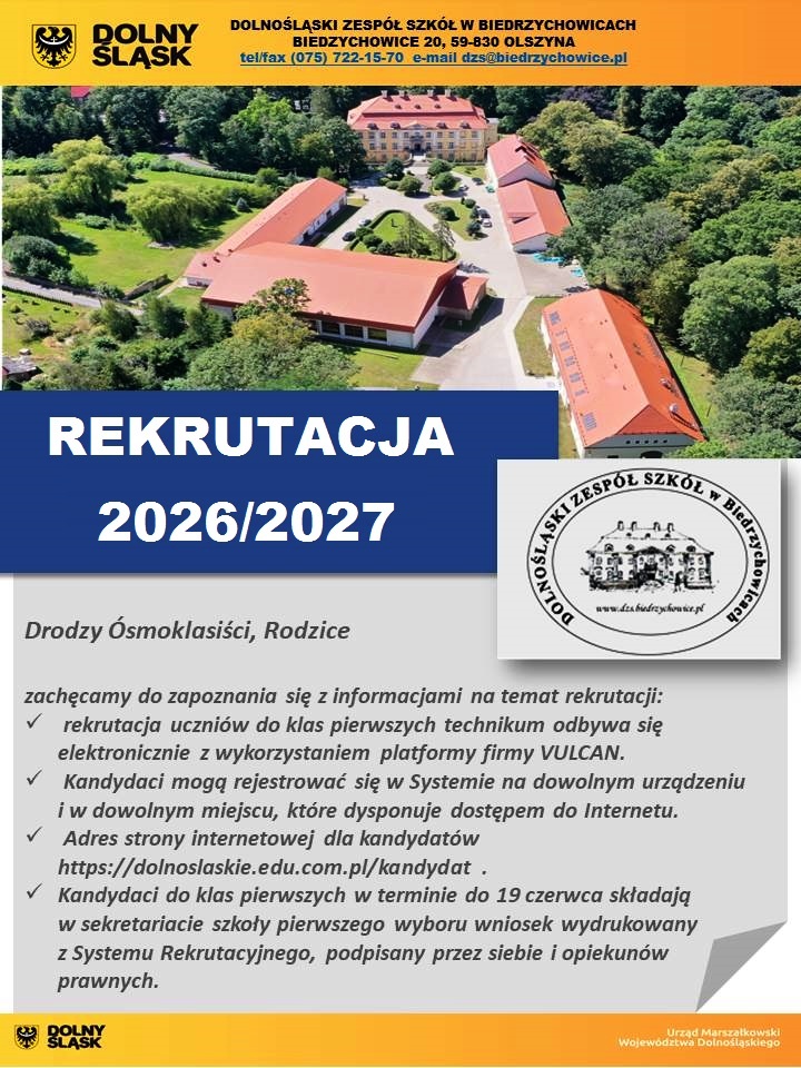 Trwa rekrutacja do szkół ponadpodstawowych. Atrakcyjną ofertę edukacyjną na rok szkolny 2026/2027, przygotował dla absolwentów podstawówek Dolnośląski Zespół Szkół w Biedrzychowicach.
