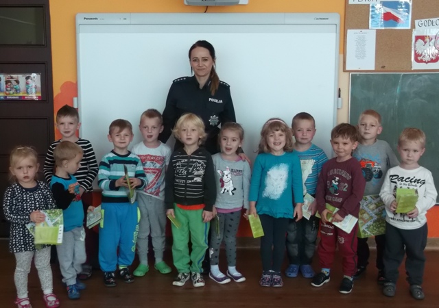 Tym razem zajęcia odbyły się w Zespole Szkolno-Przedszkolnym w Radogoszczy i w Przedszkolu Niepublicznym „Leśne efiki” w Leśnej. Dzieci z uwagą i wielkim zaangażowaniem uczestniczyły w rozmowie z policjantką wykazując się dużą wiedzą z zakresu przepisów ruchu drogowego. Wspólnie omówione zostały zasady przechodzenia przez przejście dla pieszych, poruszania się pieszo na terenie miasta i poza terenem zabudowanym, noszenia odblasków, jazdy w foteliku czy też siedzisku oraz zapinania pasów bezpieczeństwa. Na koniec dzieci przećwiczyły, kiedy i jak korzystać z telefonów alarmowych 112 i 997.