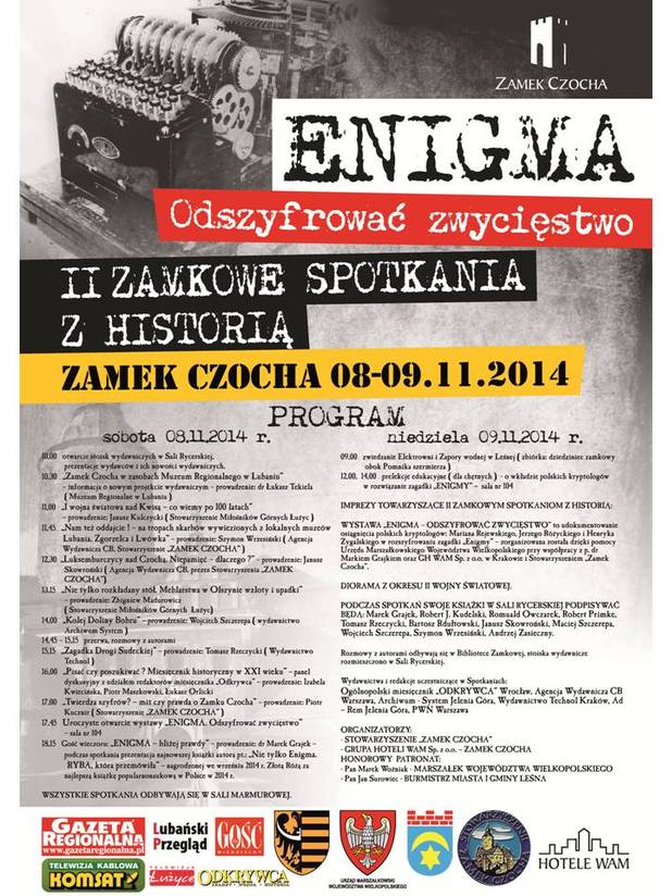 Stowarzyszenie „Zamek Czocha” wraz z Grupą Hoteli WAM Sp. z o.o. w Krakowie i Zamkiem Czocha organizują pod Patronatem Marszałka Województwa Wielkopolskiego, Starosty Lubańskiego i Burmistrza Miasta i Gminy Leśna II Zamkowe Spotkania z Historią. Spotkaniom towarzyszyć będzie Wystawa „ENIGMA. Odszyfrować zwycięstwo”.