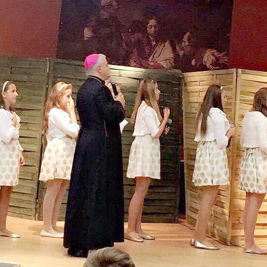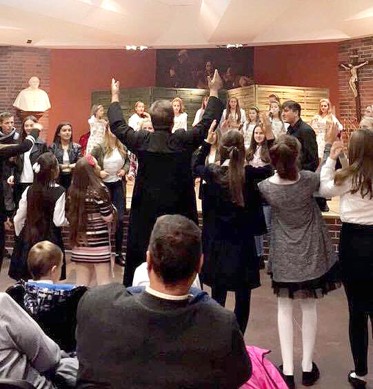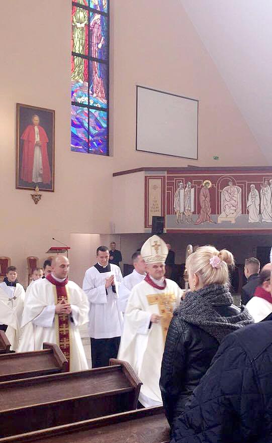 Obchody Dnia Papieskiego rozpoczęła uroczysta Msza św. sprawowana w parafii Matki Bożej Królowej Polski pod przewodnictwem bpa Marka Mendyka. W Eucharystii uczestniczyli klerycy, dyrektorzy, nauczyciele, katecheci, oraz przedstawiciele 25 szkół noszących imię Jana Pawła II. Po Mszy Św. uczestnicy spotkania udali się jak zawsze na wspólny poczęstunek. Kolejnym punktem uroczystości był piękny występ artystyczny w wykonaniu zespołu „Promyczki Dobra” z Nowego Sącza- pt. ” Apostołowie Miłosierdzia”. Miła i radosna atmosfera, która towarzyszyła występowi udzieliła się wszystkim. Publiczność żywo włączyła się w śpiew i taniec a całość koncertu nagrodzono gromkimi brawami. Spotkanie zakończyło się wspólną modlitwą- Koronką do Miłosierdzia Bożego.