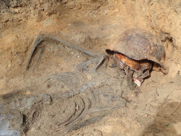 W jamie grobowej odnaleziono osobiste przedmioty należące do żołnierza oraz częsć jego wyposażenia, w tym m.in. żarówki do latarki oraz guziki. Nie odnaleziono natomiast tabliczki ze stopniem, imieniem i nazwiskiem. Szczątki poddano badaniom. Obecnie trwa proces identyfikacji szczątków.