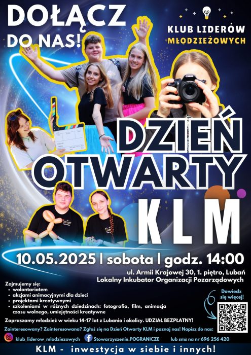 Dzień Otwarty to doskonała okazja, aby dowiedzieć się, czym zajmuje się KLM, wziąć udział w ciekawych warsztatach, poznać nowe osoby i rozpocząć swoją przygodę z działalnością społeczną. Grupa, funkcjonująca w Lubaniu już od ponad 10 lat, specjalizuje się w wolontariacie pozaszkolnym, akcjach animacyjnych dla dzieci oraz działaniach kreatywnych takich jak fotografia czy film.