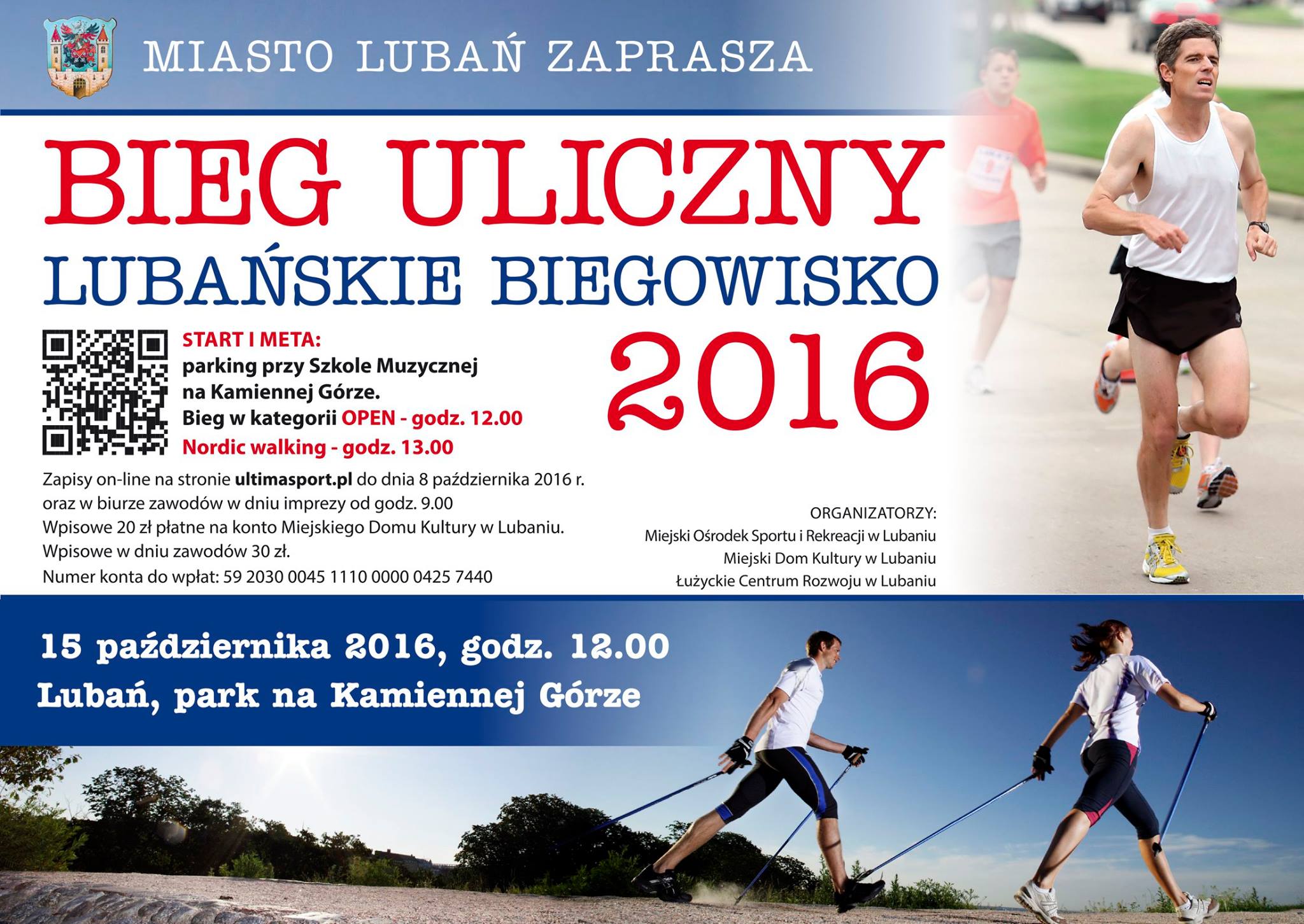 Miejski Ośrodek Sportu i Rekreacji w Lubaniu, a także Miejski Dom Kultury i Łużyckie Centrum Rozwoju, zapraszają wszystkich chętnych na „Lubańskie Biegowisko” 2016, które odbędzie się 15 października br. w parku miejskim „Kamienna Góra”.