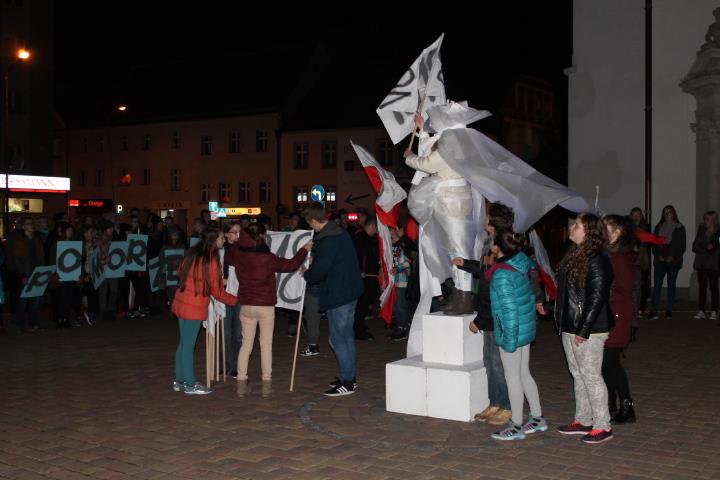 Wieczorem 11 listopada uczniowie Gimnazjum nr3 im. Euroregionu Nysa w Lubaniu heppening z okazji Narodowego Święta Niepodległości. Było świątecznie i patriotycznie. Uczniowie Trójki doskonale przedstawili historię narodzin polskiej niepodległości w 1918 roku.