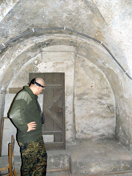 Oto pod pomieszczeniem, w którym znajdowały się kiedyś urządzenia telekomunikacyjne jednego z operatorów telefonii komórkowej znajdujemy…stare drzwi, które tam zostały po przebudowie pomieszczenia, jakiej dokonano po II wojnie światowej. Drzwi, z w pełni sprawnym zamkiem, ocalały zapewne, dlatego, że po przebudowie podłogi pomieszczenia zamknięto sobie możliwość wyniesienia ich. Tak oto dzięki temu mogliśmy odkryć element starego wystroju ratusza pochodzącego najprawdopodobniej z okresu przed pożarem wieży ratusza z 1929 roku.