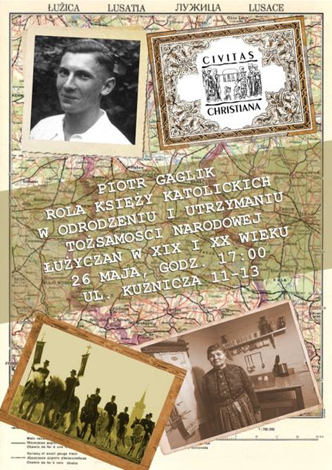 Rola księży w odrodzeniu i utrzymaniu tożsamości Łużyczan Przegląd Lubański Zapraszamy na spotkanie z Piotrem Gaglikiem „Rola księży katolickich w odrodzeniu i utrzymaniu tożsamości narodowej Łużyczan w XIX i XX wieku” 26 maja, godz. 17:00, Wrocław, ul. Kuźnicza 11-13 (I p.) Civitas Christiana