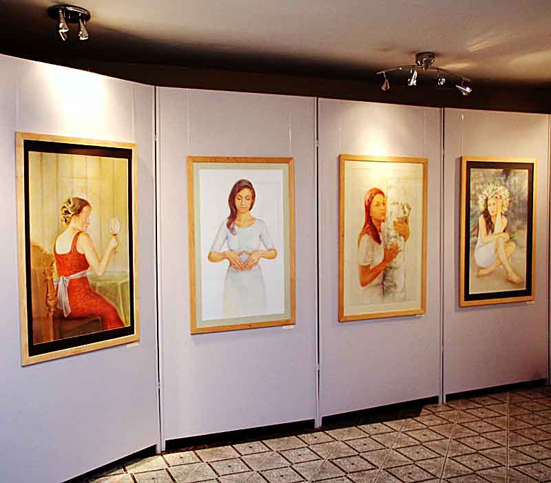 Tematem wystawy są portrety wykonane techniką suchy pastel. Autorka nawiązuje do tradycji sztuki realistycznej. Postacie jak żywe spoglądają na nas z jej obrazów. Po wejściu do Sali wystawowej spływa na nas światło i spokój. Stajemy się światłem napromieniowani. Każda osoba z obrazu wydaje się mieć jakąś tajemnicę, której możemy się tylko domyślać. A może tak jasne i tajemnicze mogą być tylko anioły?
