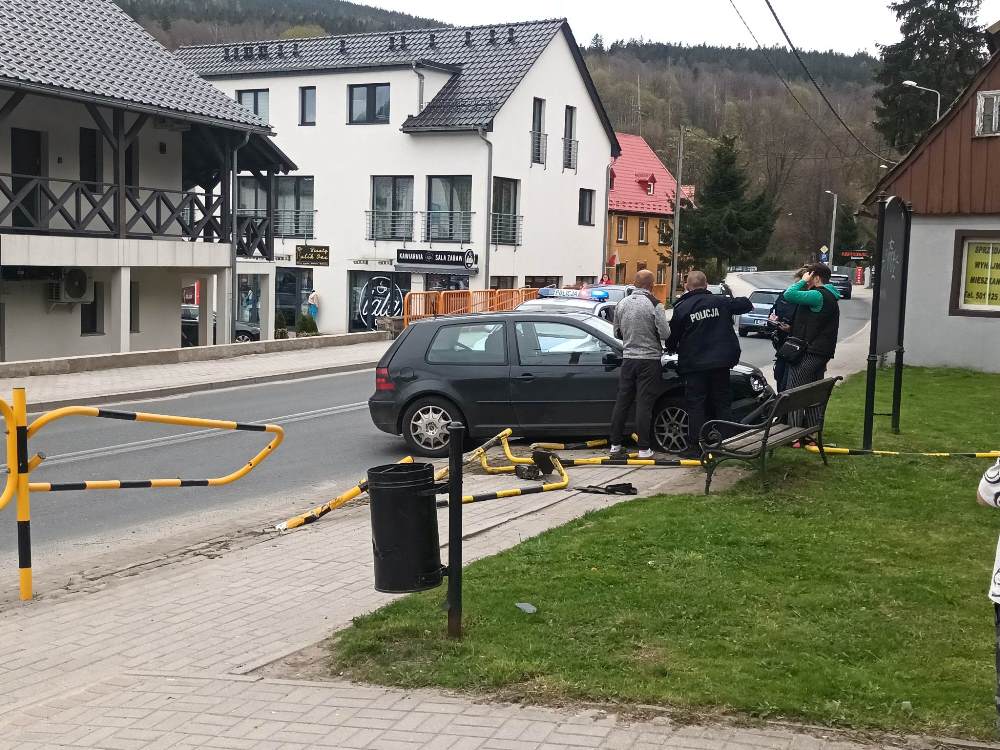 W piątkowe popołudnie (28.04.2023 r.), kilkanaście minut przed godziną 15, kierujący Volkswagenem Golfem jadąc ulicą 11 Listopada w Świeradowie- Zdroju stracił panowanie nad autem. Samochód zjechał z drogi, przebił barierki i zatrzymał się na chodniku.
