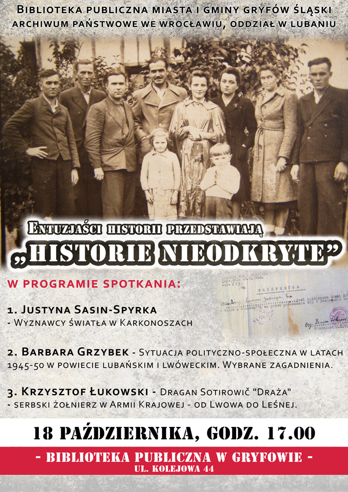 To jeden z tematów spotkania w Bibliotece Publicznej w Gryfowie Śląskim. Szczegóły na plakacie. Zapraszamy, spotkanie pod hasłem „Historie nie odkryte” już 18 października 2013 roku o godz. 18:00