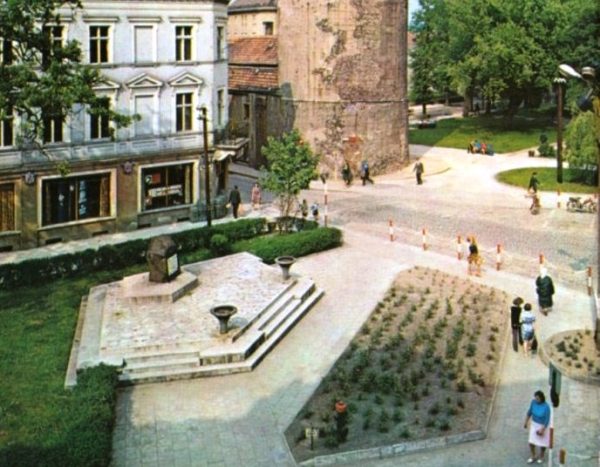 Następnie miejsce to nazwano Placem 1 Maja, a 8 maja 1965 roku na odsłonięto bazaltowy pomnik z okazji XX-lecia powrotu Ziemi Lubańskiej do Macierzy. Od tej pory w tym miejscu odbywały się uroczystości państwowe, zwłaszcza z okazji 1 i 9 maja**. Pamiętam, że jako dziecko biegaliśmy z kolegami podczas świąt państwowych zbierając łuski, po salwach oddawanych z karabinów przez żołnierzy Łużyckiej Brygady WOP. Okolicznościowo na placu odbywały się również przysięgi wojskowe żołnierzy WOP.ba później ślubowania funkcjonariuszy Straży Granicznej. Jednak po latach zrezygnowano z tego obyczaju*** (przypis redakcji).