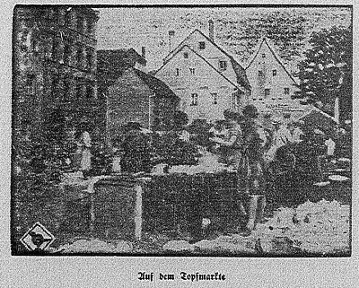 Na placu pomiędzy wspomnianymi bramami miejskimi odbywały się jarmarki, na których rzemieślnicy wystawiali swoje towary, tak iż plac ten zwano także potocznie Topfmarkt. Jak sama nazwa wskazuje, handlowano na nim przede wszystkim naczyniami, garnkami, przyborami niezbędnymi w każdej kuchni, można było także naostrzyć noże.
